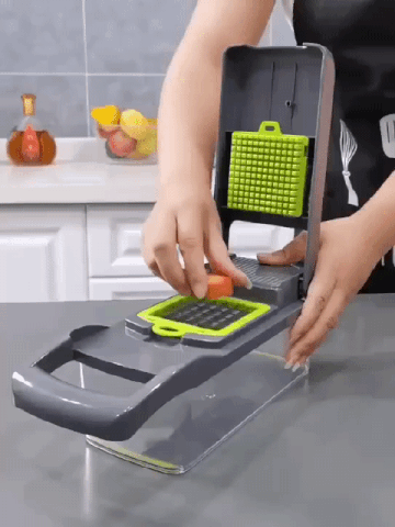 Este Novo Cortador feito de Aço Inoxidável e plástico ABS oferece todas as funcionalidades de vários aparelhos que dão aquele trabalhão na hora de procurar e lavar. Essas lâminas podem cortar todos os tipos de vegetais, ralar queijo, fatiar batata e cortar frutas, podendo até mesmo criar verduras pastosas ou purê de batata.