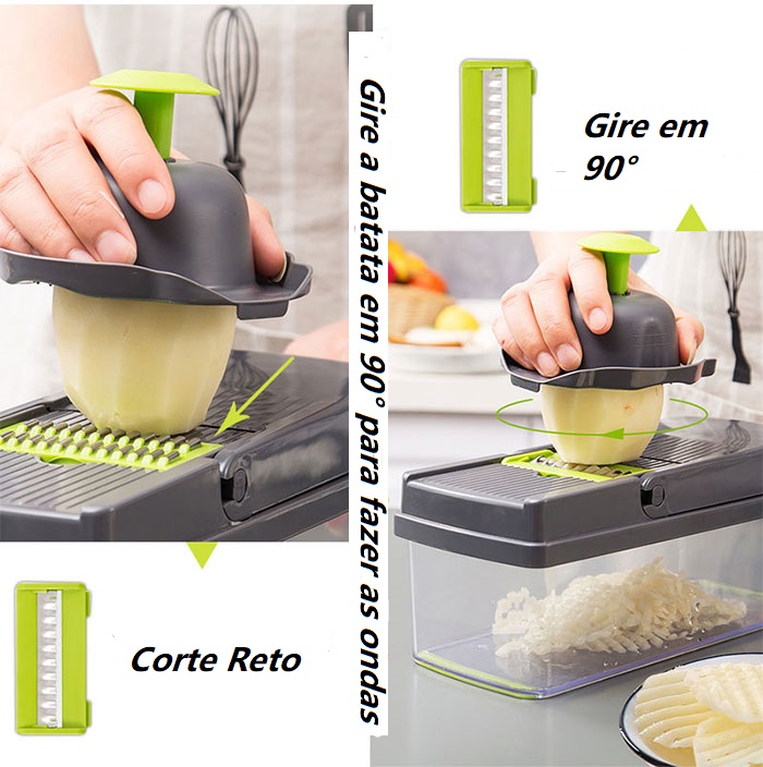 Com o Novo Cortador Multifuncional você tem 8 Funções Diferentes. Que além de ser eficaz agiliza muito mais o tempo do seu trabalho!
